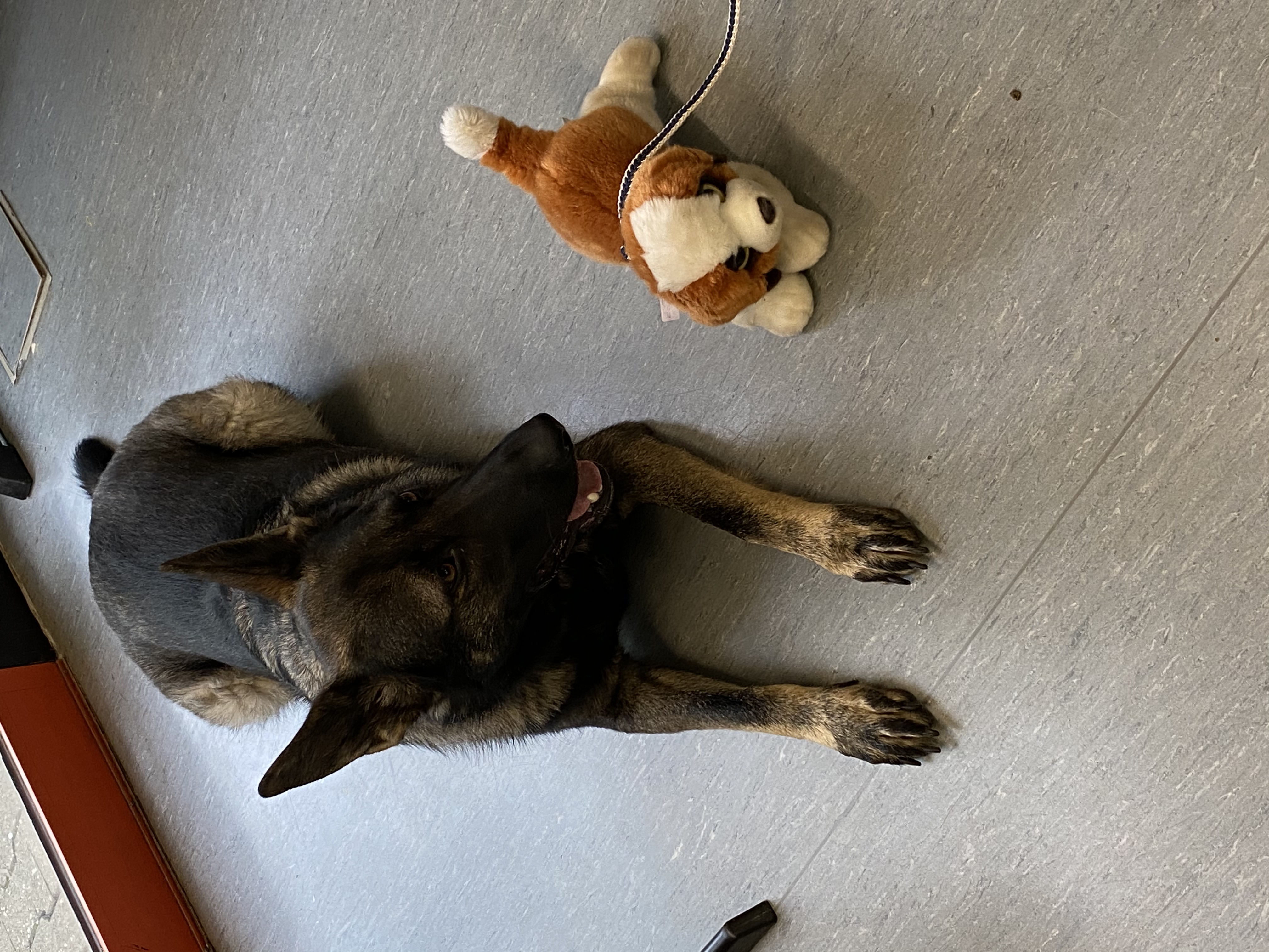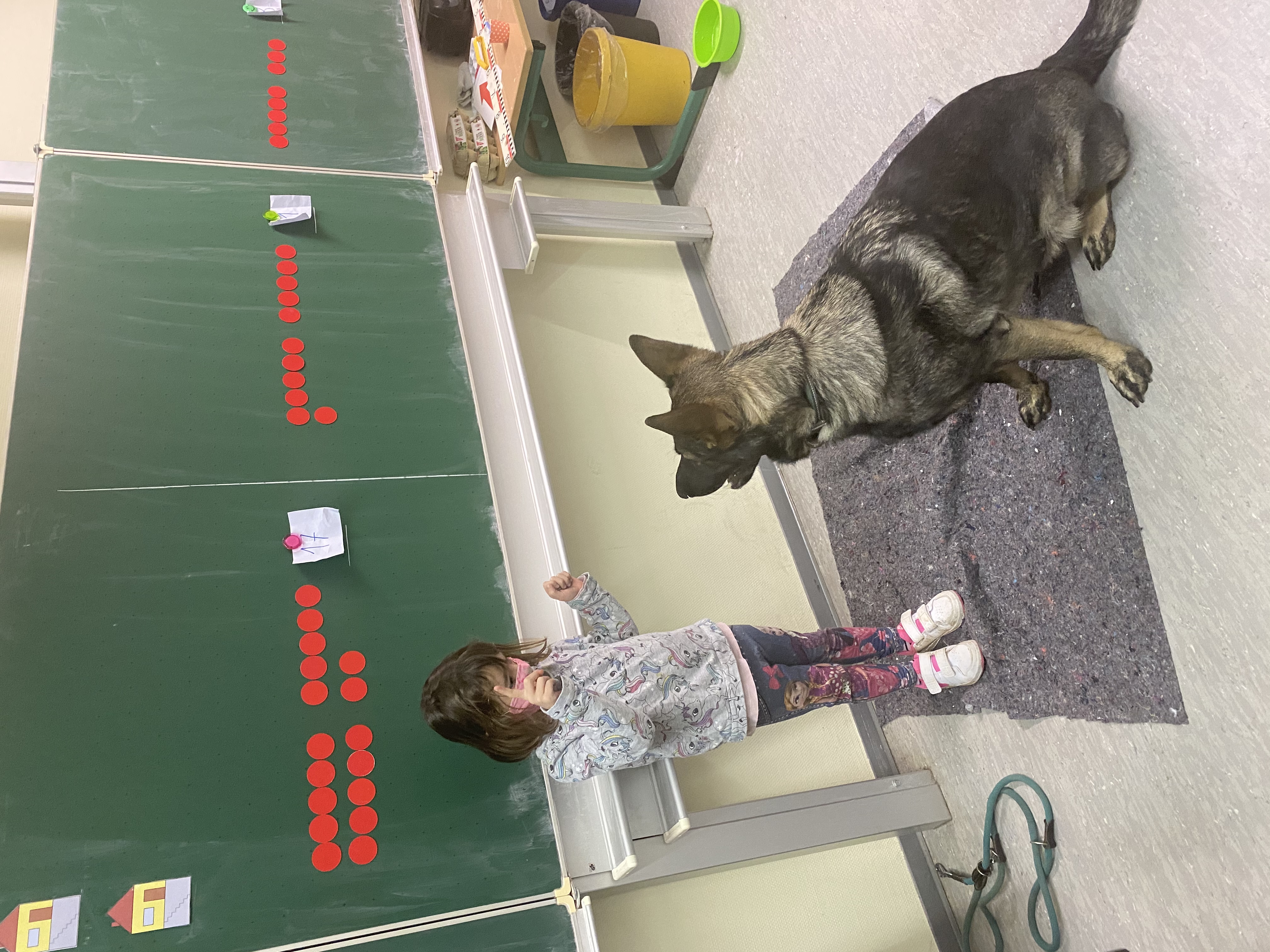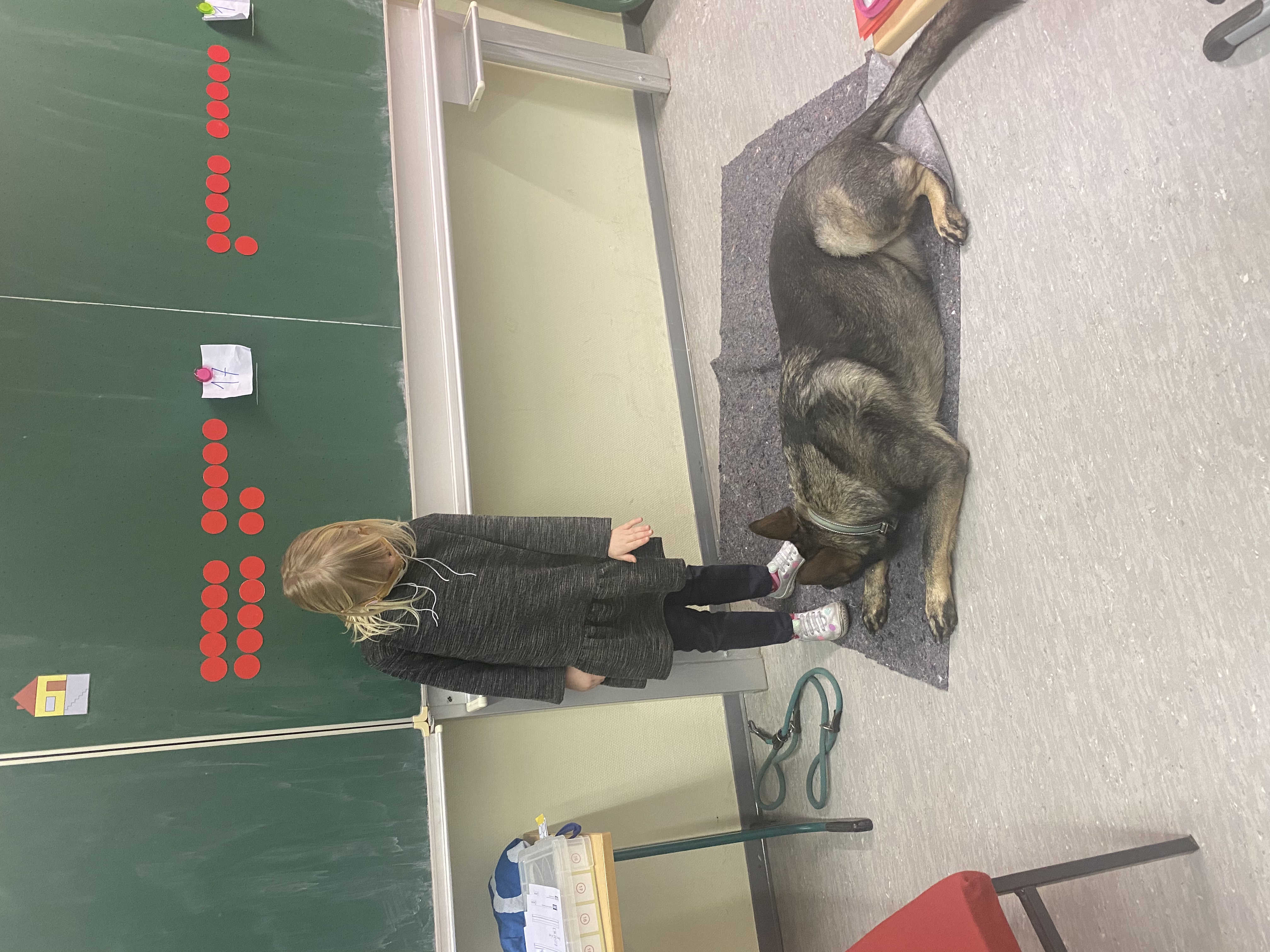 Im Schuljahr 2020/ 21 hat „Fraya“ ihre Arbeit als Schulhund bei uns aufgenommen. Aufgrund der Corona - Pandemie war Fraya hauptsächlich in der Notbetreuung der Jahrgangsstufe 1eingesetzt. Dort agierte sie auch als Testpate und unterstützte die Kinder beim Selbsttesten.